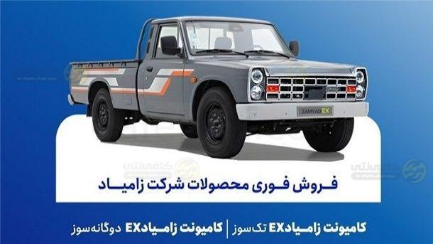 🔸شرکت زامیاد از امروز دوشنبه، 31 فروردین ماه، ساعت 10 صبح فروش فوری دو محصول خود را آغاز میکند و مشتریان میتوانند تا زمان تکمیل ظرفیت برای خودروهای زامیاد EX تکسوز و زامیاد EX دوگانهسوز ثبتنام کنند.